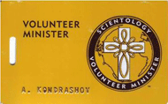 На фото сверху: именной пластиковый жетон саентологического добровольного священника. «Авторское право» 2001 год, I HELP INTERNATIONAL.