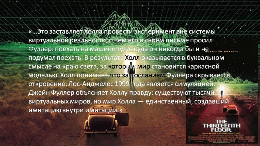 Я представляю себе внутренний город, ограниченный рамками моего понимания действительности. Есть такой несколько наивный фильм «13 этаж», в котором главный герой доходит до границы города (если в фильме «Матрица» герои переключались между реальностями, то тут мир кончался в буквальном смысле, как и в «Шоу Трумана»).